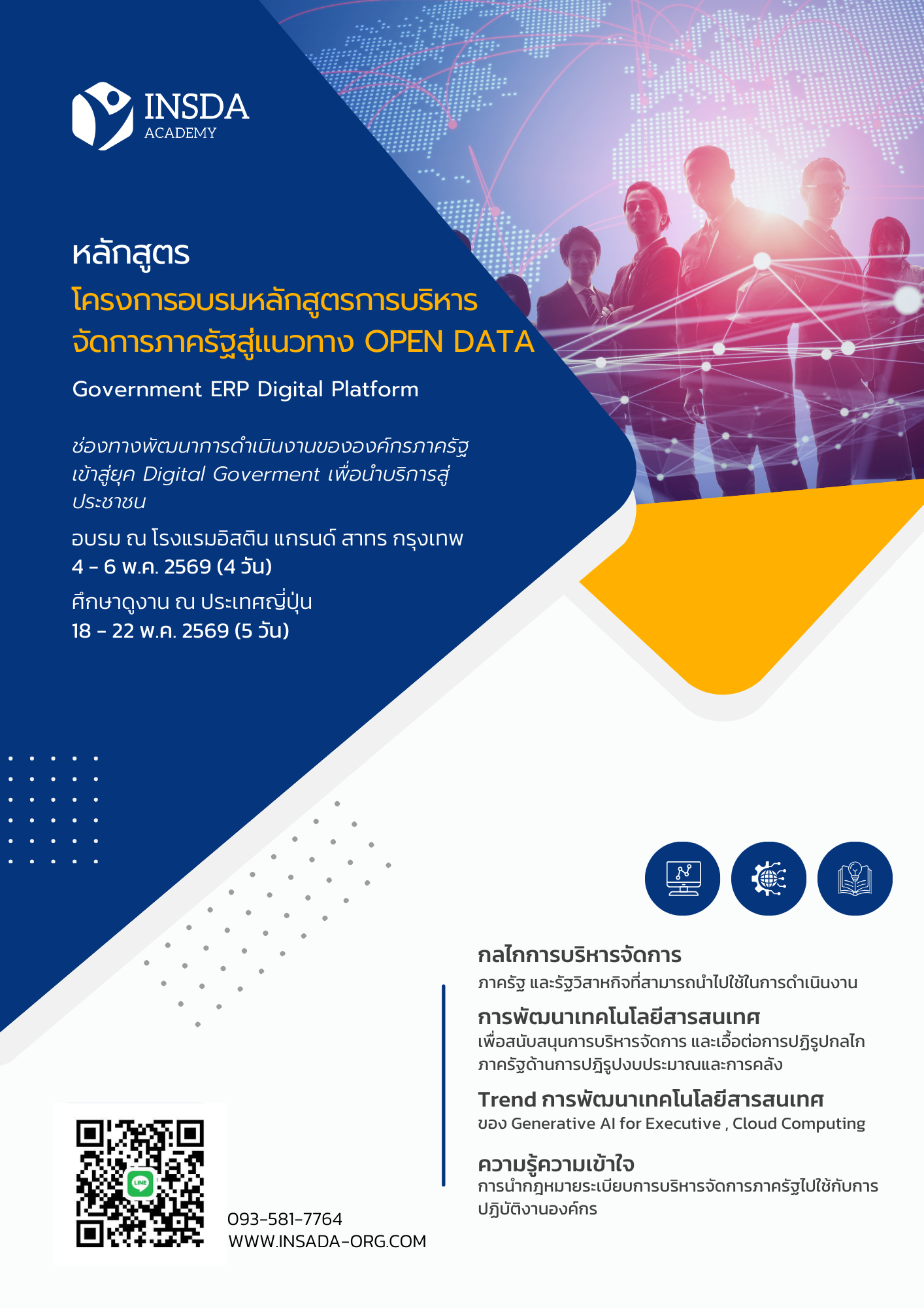 มูลนิธิสหวิทยาการเพื่อการวิจัยและพัฒนาเพื่อเครือข่ายสหวิทยาการแห่งราชบัณฑิตยสภาในพระราชูปถัมภ์ สมเด็จพระเทพรัตนราชสุดาฯ และสมาคมเครือข่ายไอซีทีเพื่อการพัฒนาสังคม หรือ INSDA ได้จัดโครงการจัดอบรมหลักสูตรการบริหารจัดการภาครัฐด้วยเทคโนโลยีสารสนเทศ